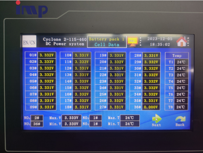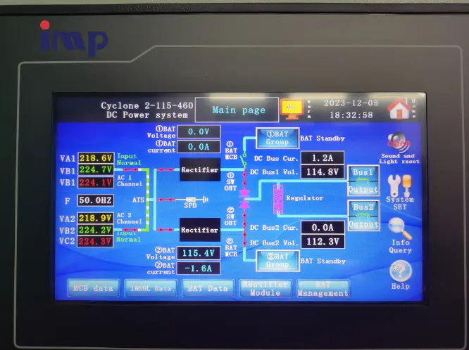 In the event of an AC grid outage, the system seamlessly transitions to battery backup mode. As the rectifier modules cease operation, the battery pack immediately takes over powering the connected DC loads without interruption. A monitoring module tracks the battery's discharge voltage and current in real-time, triggering alarms when the set end-of-discharge threshold is reached. Simultaneously, the module processes and displays data from the power distribution monitoring circuits, providing comprehensive status updates during the grid failure.