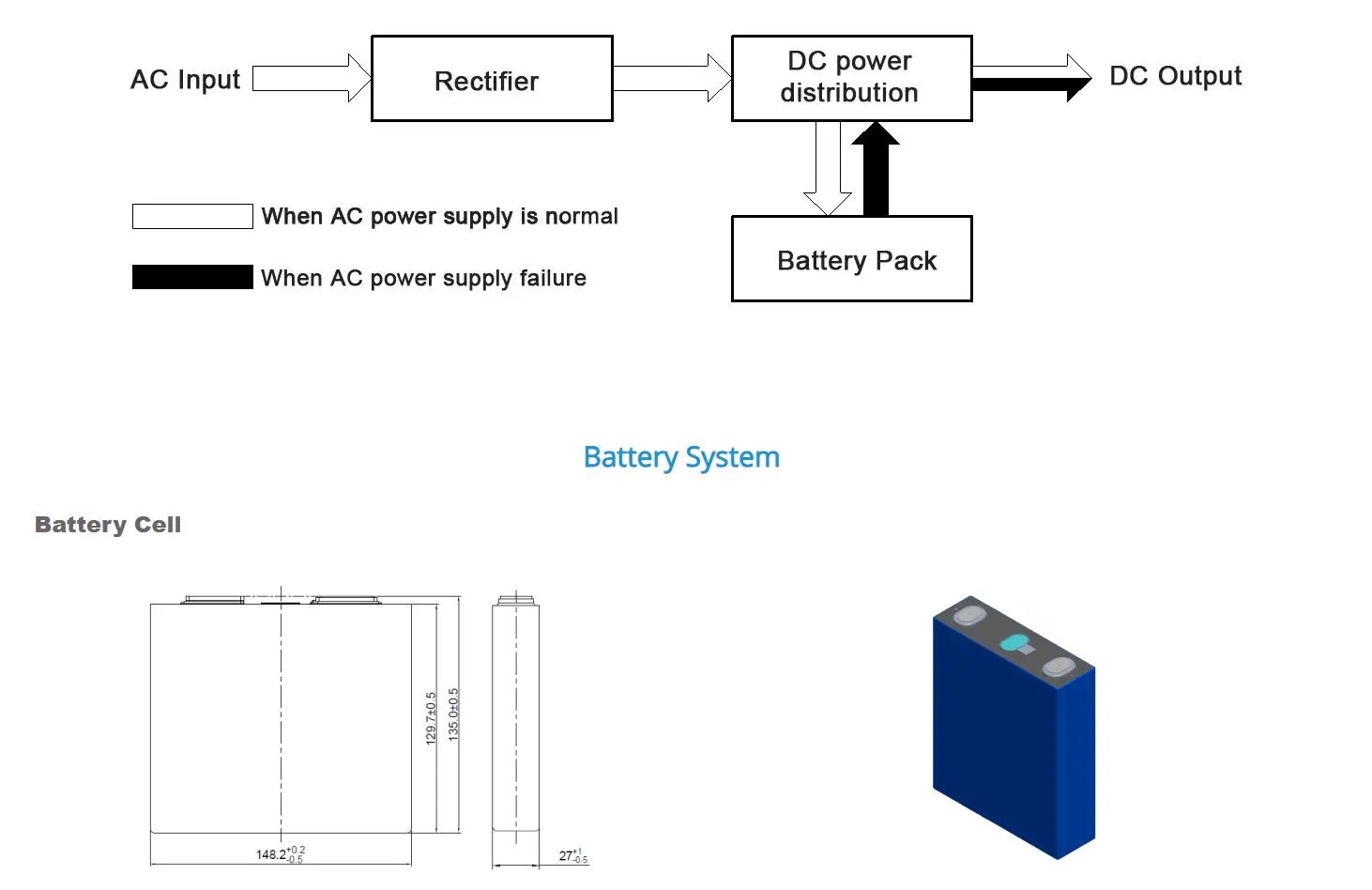In normal operating mode, the AC power distribution unit channels grid electricity to the high-frequency rectification modules. These modules efficiently convert the alternating current into direct current, simultaneously charging the battery system and supplying stable DC power to the connected load through the DC distribution network. This seamless AC-to-DC conversion ensures uninterrupted operation, making the system well-suited for mission-critical applications requiring a reliable and consistent power supply.