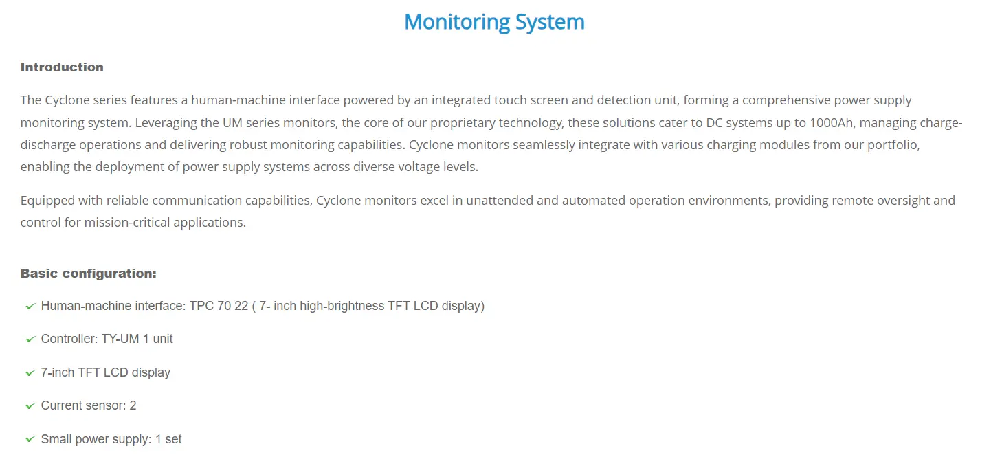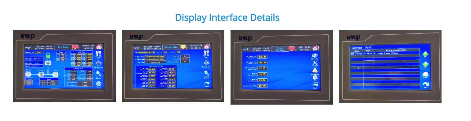 In the event of an AC grid outage, the system seamlessly transitions to battery backup mode. As the rectifier modules cease operation, the battery pack immediately takes over powering the connected DC loads without interruption. A monitoring module tracks the battery's discharge voltage and current in real-time, triggering alarms when the set end-of-discharge threshold is reached. Simultaneously, the module processes and displays data from the power distribution monitoring circuits, providing comprehensive status updates during the grid failure.